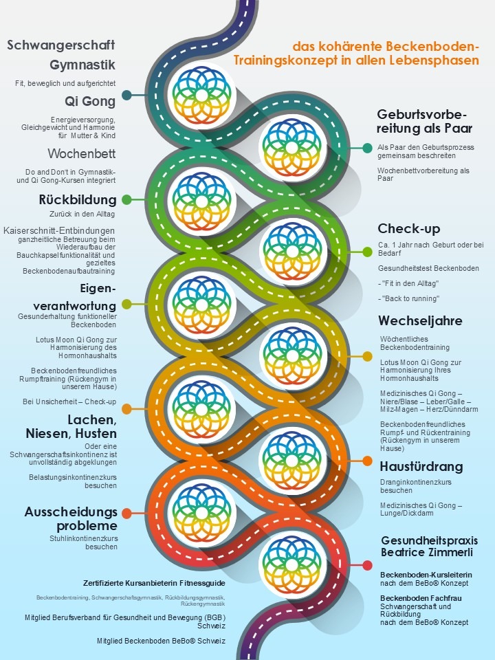 - Beckenbodentraining für die Frau nach unserem kohärenten und bewährten Beckenbodentrainingskonzept in allen Lebensphasen